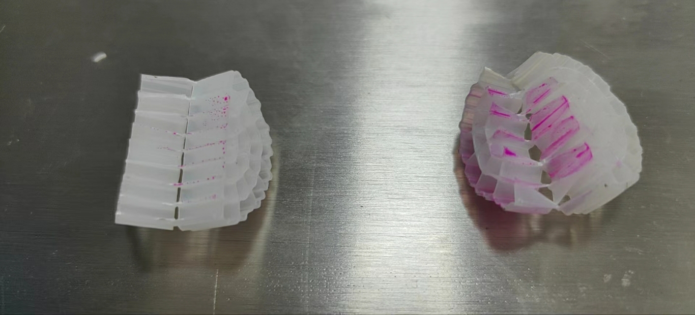 粗糙化表麵和極性官能團為微生物(如硝化菌、反硝化菌)提供了更穩定的定植環境,微生物附著量可提升 20%-60%,且形成的生物膜更致密、不易脫落;同時,親水分散性確保填料在反應器內均勻分布,避免 “死區”(無微生物區域),提高汙水淨化效率(如 COD 去除率、氨氮降解率可提升 10%-25%)。
